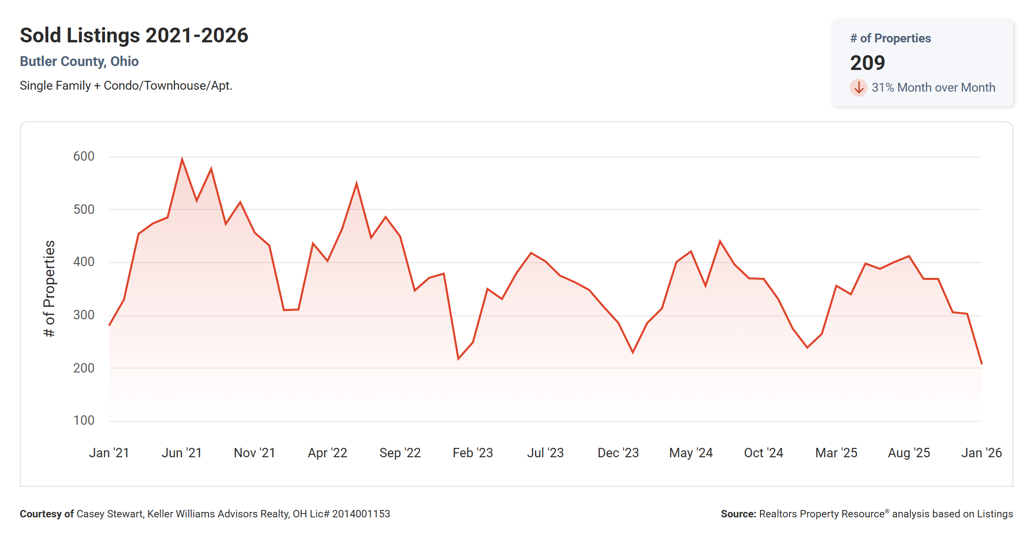You can see in the charts above that these trends seem to be true throughout greater Cincinnati (each one pulled data from a different county), but keep in mind that this can vary on a micro level: urban, suburban, and rural markets all function a little differently, which is why it’s so important to review your specific situation with a great agent. Your price range, school district, and percentage of investors to owner-occupants can also affect market activity and timing, not to mention national factors such as mortgage rates and economic or political uncertainty.